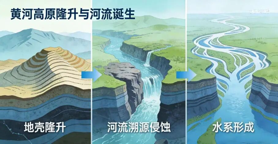 1. 地势重组:高原隆升形成了“西高东低”的总体地形,为水流向东奔流提供了原始动力。