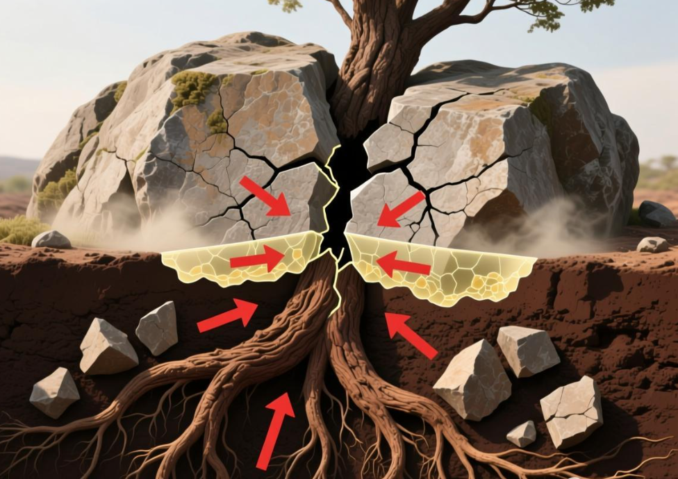二、“咬定”之力:根劈作用与生物风化