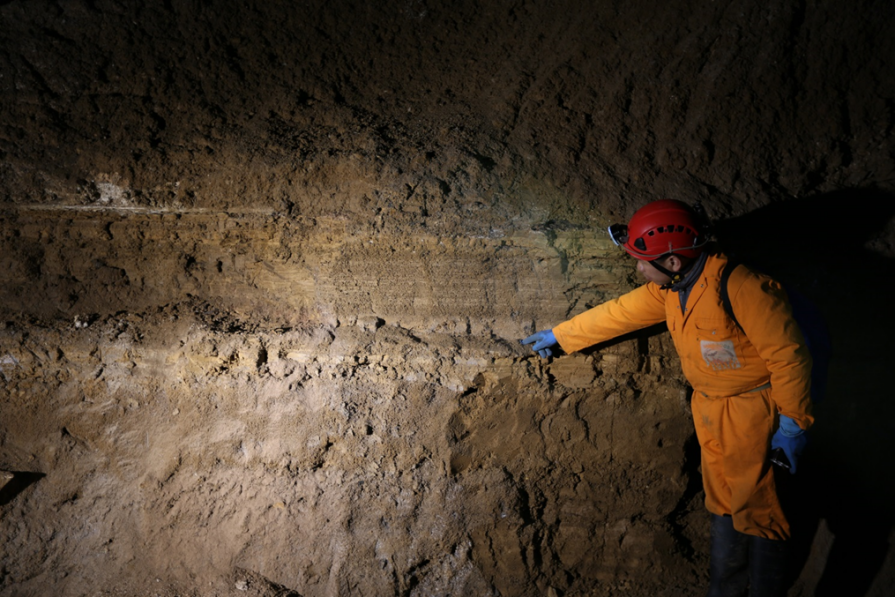 ②流水沉积:洞外水流携带的碎屑物质在洞内由于水动力条件的改变而产生的松散堆积,包括裂隙水渗入的粘土和地下河沉积物,如河流冲积卵砾石层、粘土层和洞内广阔水域的粘土沉积。