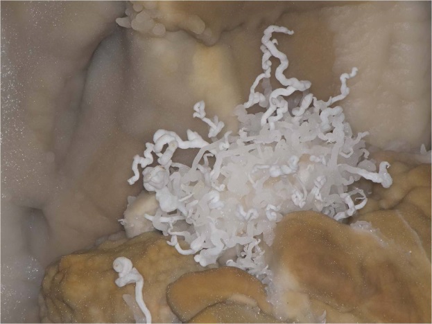 观音洞内的石膏卷曲石与毛发(重庆金佛山)