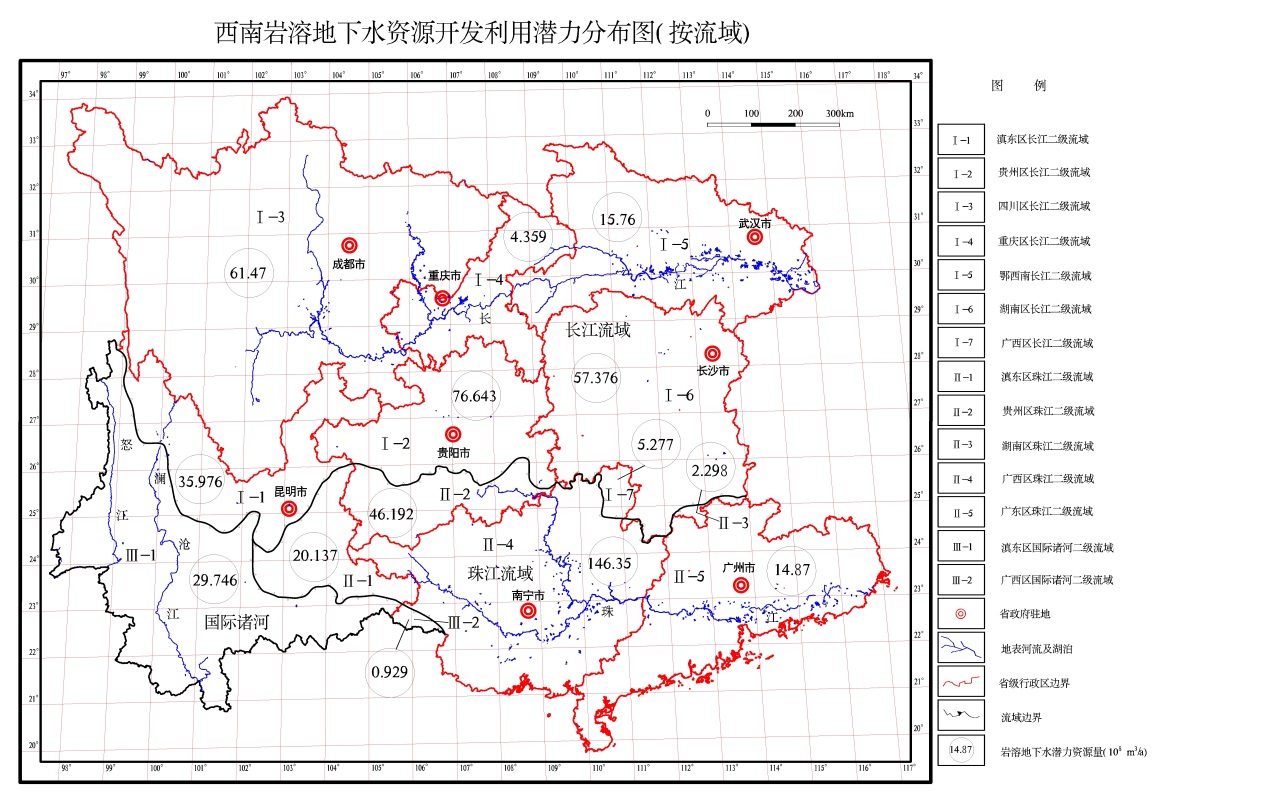 中国岩溶地下水资源量约2000亿m3/a,占地下水资源总量的四分之一,其中南方岩溶水天然资源量1856亿m3/a,允许开采量614亿m3/a,已开采量90亿m3/a。