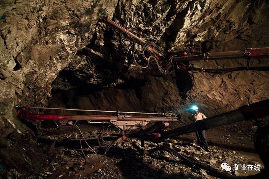 ▲一座地下矿井的末端,一台钻机正在进行作业。这台机器有两条手臂(一高一低),用于对岩石进行水平钻孔,而后埋入爆炸装置。在这座矿井,每天都会听到巨大的爆破声。